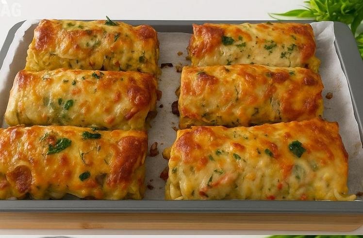 4. Decore e sirva: Retire os enroladinhos do forno. Decore com salsinha fresca picada a gosto para um toque final de frescor e cor. Sirva imediatamente e desfrute desta delícia que você vai querer fazer toda semana para o jantar!