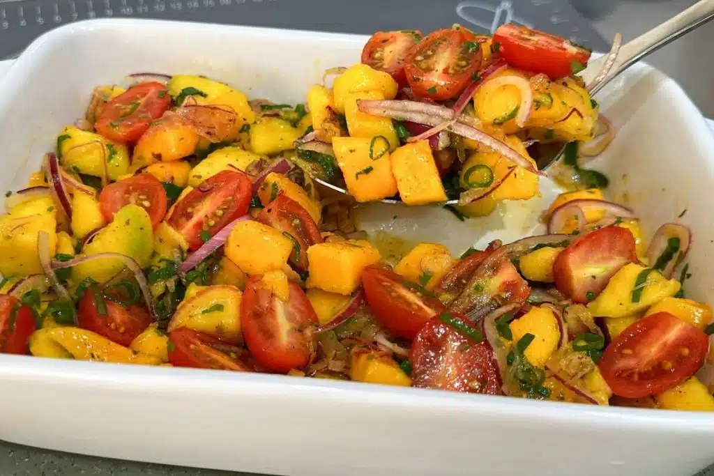 Para refeições mais leves ou como parte de um buffet, o vinagrete de manga é uma adição estelar.